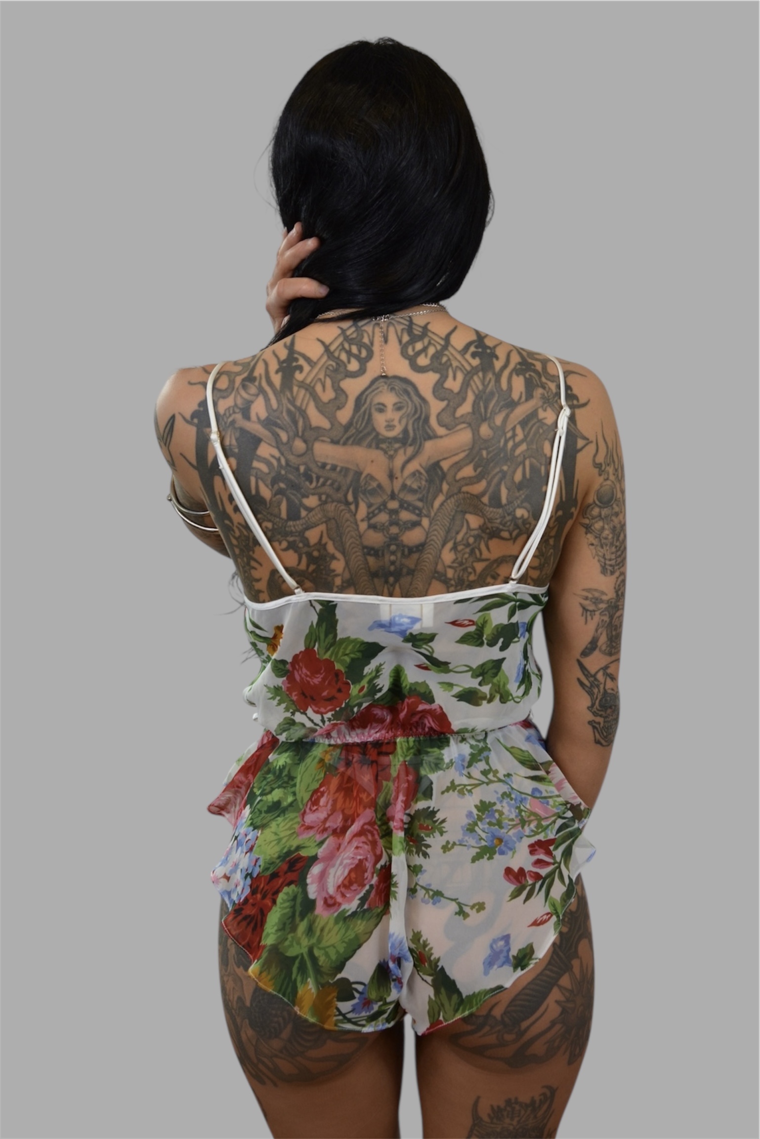 Floral vintage bodysuit with adjustable straps. Please note the right side strap is sewn on differently then the left. Hardly noticeable. Sold as is.